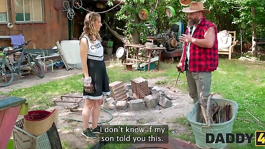 Naughty blonde is intimidated by stepdads tool