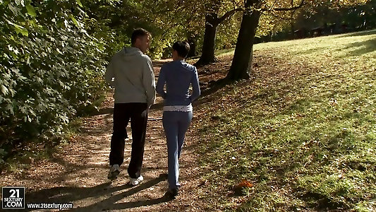 Ginger-haired cutie Lucy Foxx pokes with a buddy until he spunks