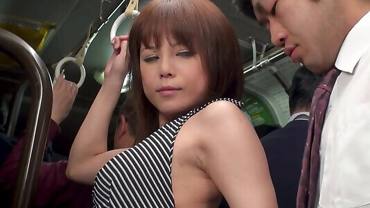 Shy Chinese sweetheart satiates insatiable folks with stout blowjob in the bus