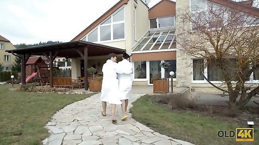 OLD4K. Elderly boy and ebony-haired Gf have delicate lovemaking session