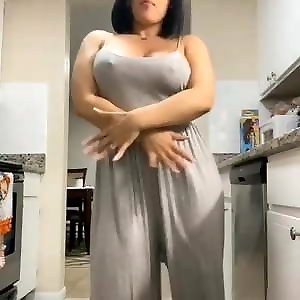 Bisex busty bigass babe 3way fucked in kitchen in MMF 3some