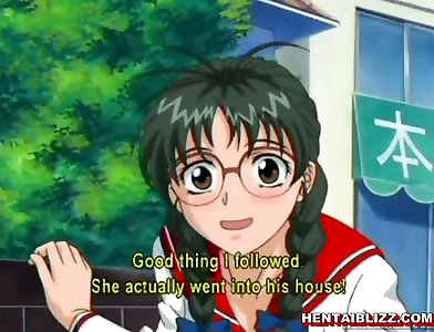 Lovely anime coed paws her firm nipples and gets romped