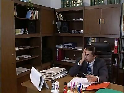Assistant impatiently blows a coworker and takes a super hot 2 big cock one pussy cumshot