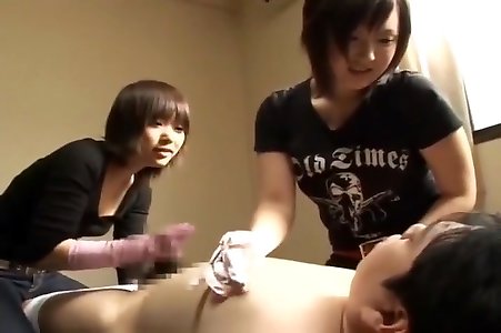 2 Chinese Femmes Gloves Handjob and Tickle