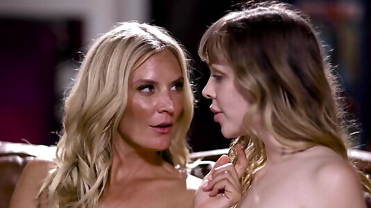Horny lesbians Mona Wales and Aliya Brynn have sex on the sofa