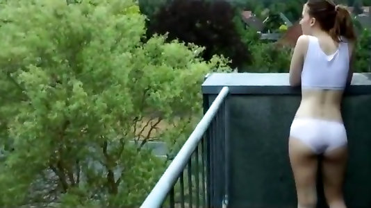school damsel in leggings washes her truck and pokes in public