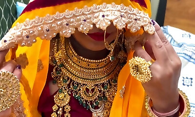 novia y novio recién casados hacen una historia de ensueño en su noche de deshierbe, follada con consolador, sexo duro, sraboni sexy